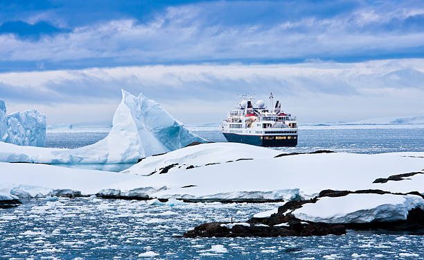 Big cruise ship in the Antarctic watersBig cruise ship in the Antarctic watersBig cruise ship in Antarctic waters