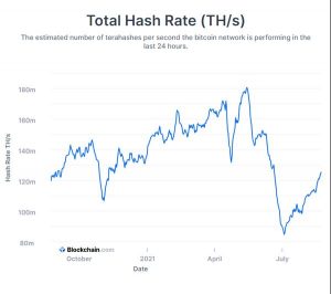 The hash rate — a measure of the computational power being put toward the Bitcoin network — has also rebounded from early-July lows, in a sign that the sector is adjusting after disruptions caused by China’s clampdown.