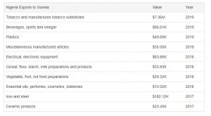 From data provided above it will be very unusual for the Nigerian economy to be significantly affected by the political turmoil ongoing in guinea. however, As Nigeria being regarded as an African power shell with respect to goodwill the intervention of the Nigerian government has the potency to be necessary.